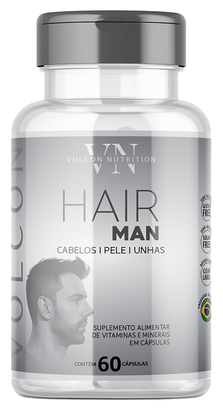 Volcon Hair Man fortalece os cabelos e unhas, reduz a queda capilar em até 98%, aumenta a energia, melhora a vitalidade e ainda ajuda a fortalecer o sistema imunológico.